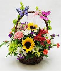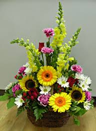 We make a vase arrangement or basket of mixed flowers. Each bouquet is unique, as the designer uses her talents!